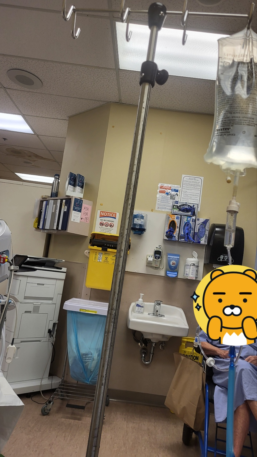 그리고 혈액 채취를 하고, 링거 바늘같은거를 팔에 꼿아놓고 떠났다.