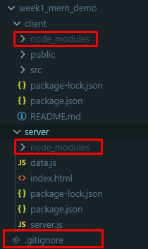 좌측에 week1_mern_demo 프로젝트 안에 client와 server 두가지 폴더가 존재하는데,