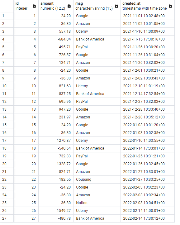 Timestamptz를 사용하여 시간을 기준으로 데이터를 filtering 할 수 있다.