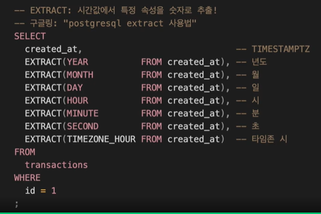 구글링 : "postgresql extract 사용법"