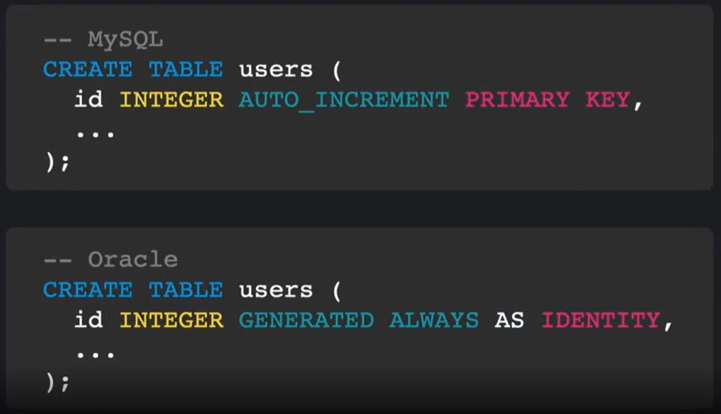 : Named "id" (usually) - DB에 의해 자동생성됨