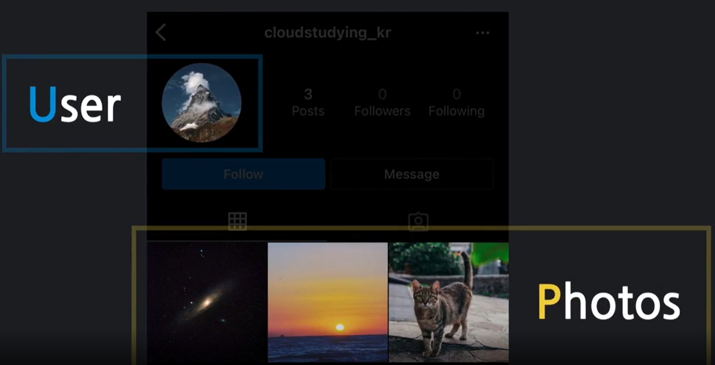 1)하나의 instagram 계정에 여러가지 사진들이 등록,