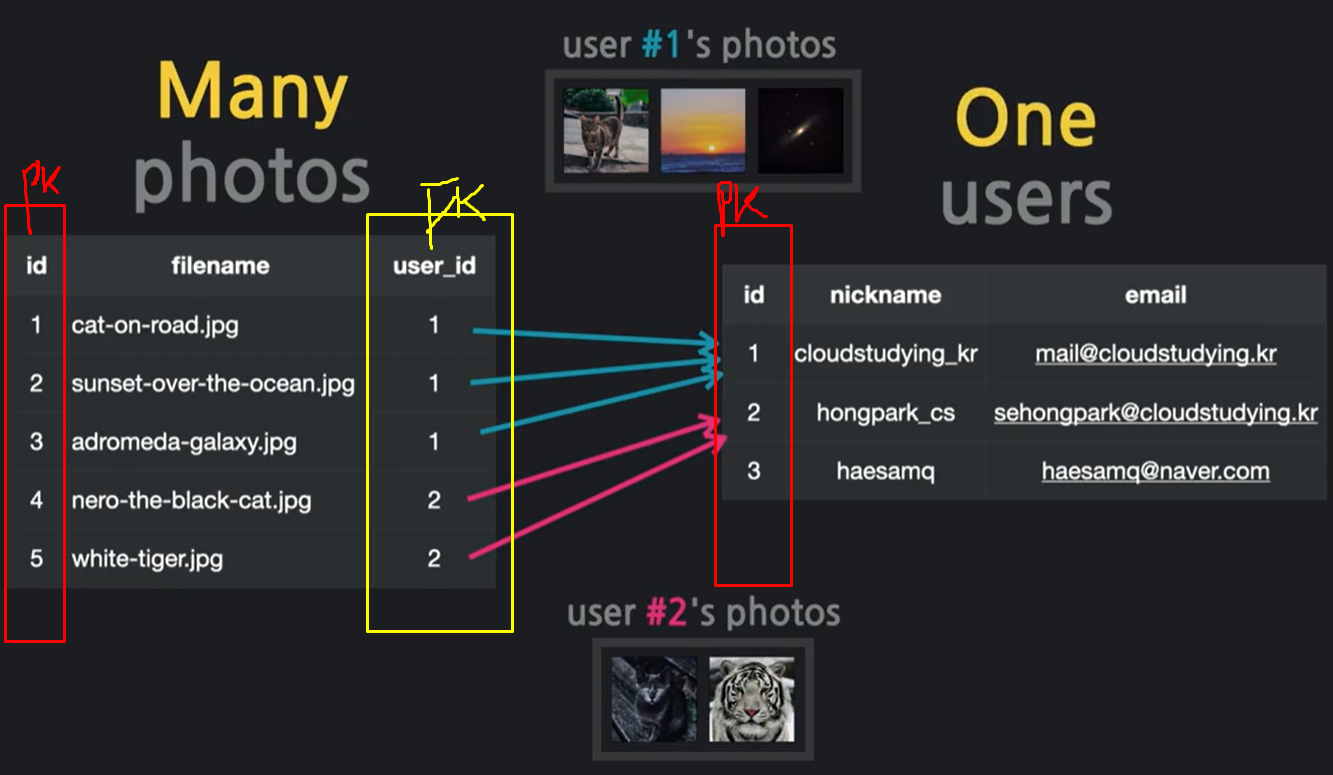 이러한 PK와 FK의 연결을 통해서 데이터의 관계가 형성됨