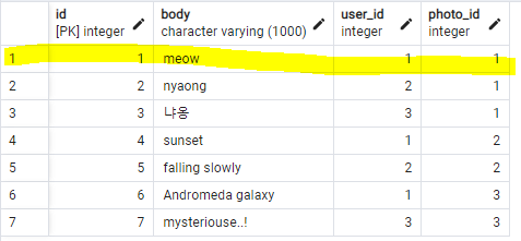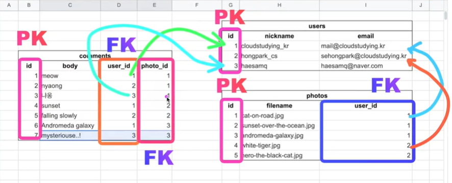 photo_id INTEGER REFERENCES photos(id) -- FK: 댓글이 달린 사진