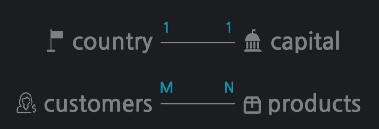 Country - capital (하나의 나라에는 하나의 수도만 있는 관계이다)
