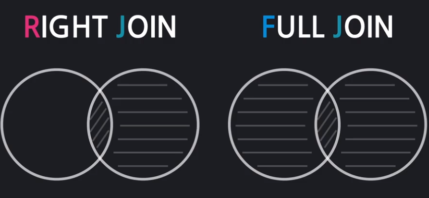 - FULL JOIN : 조인가능한 데이터 뿐만 아니라, 조인 불가능한 것들 까지도 가져옴