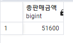 5. 상품#1 돈까스의 총판매 금액은 51,600원이다. 이를 쿼리를 통해 조회하시오.