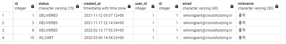 여기서 orders 테이블에 status 를 확인해서 → IN_CART에 있는 것은 제거해줘야되