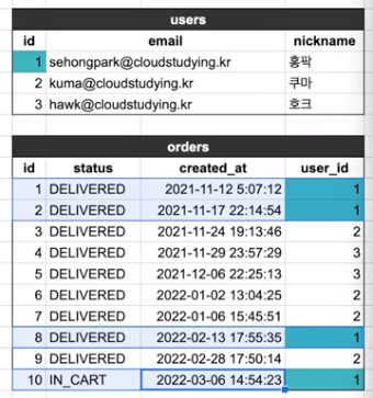 user_id INTEGER REFERENCES users(id) -- FK: 주문 사용자