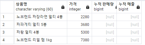 -- 누적 매출이 없다? NULL (단, NULL은 IS 로 확인해야됨)