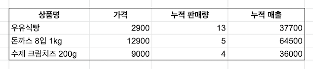 (a) 누적 매출이 35,000원 이상인 상품을 조회하시오.
