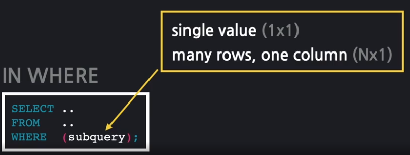 midnightcoder 2022. 12. 29. 15:01Filtering을 위한 Subquery에 대한 내용이다.