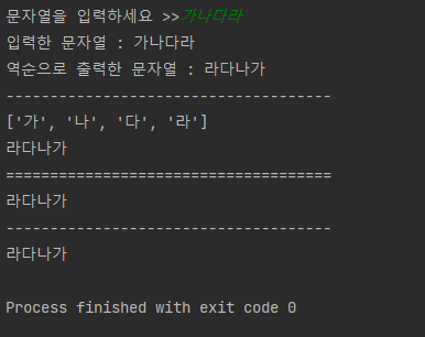 print("역순으로 출력한 문자열 : " + s_reverse)