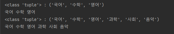 : 인자들을 가변 길이 (즉, 개수가 정해져있지 않다)로 입력받은 후 하나의 튜플로 만들어 함수 내에서 사용 가능