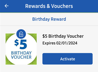 개인정보를 입력하고, 생일을 입력하면, 아래와 같이 리딤할 수 있는 쿠폰을 확인 할 수 있다.